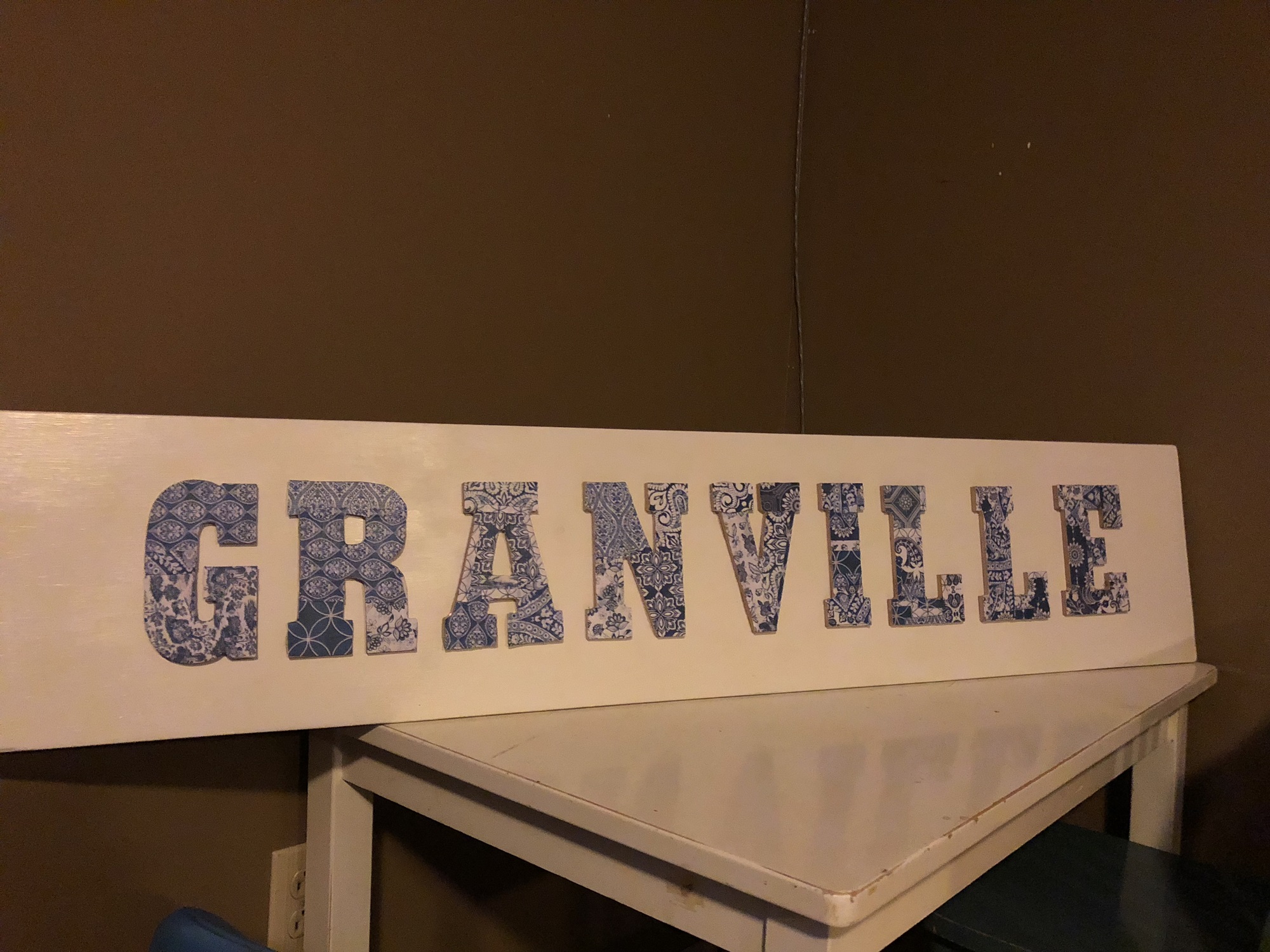 Mrs. Wildman’s 3rd graders discovered the fun of modge podge! They did an amazing job using beautiful paper and modge podge to cover the letters, to help make this fantastic Granville sign. It would be an amazing addition to any home.