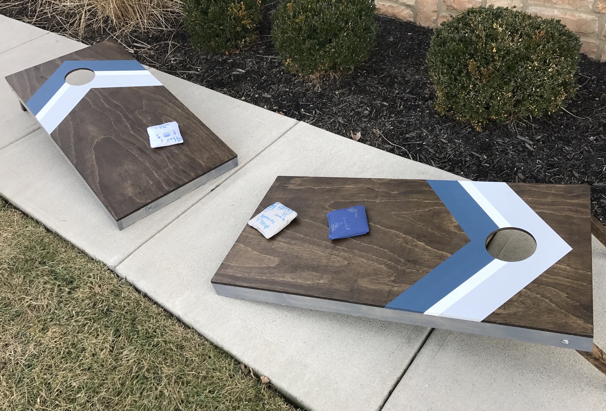 Ms. Jude's third grade class had the opportunity to put their creative touches on a Granville cornhole set. The students teamed up and created their own version of the ROCKIN' GRANVILLE ACE proudly displayed on 1 of 3 (you always need an extra) sets of bags. The Granville colors are beautifully displayed on dark walnut and weathered gray boards. These boards are regulation size, fitting for all your friendly cornhole tournaments.