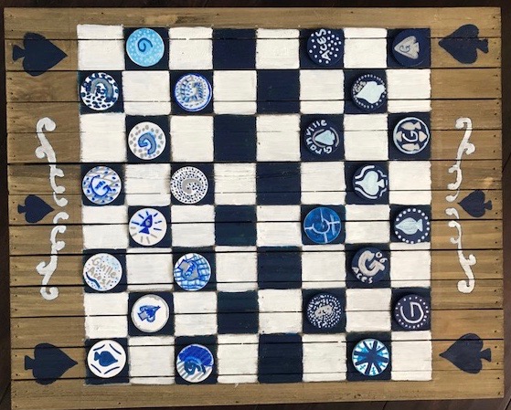 Our students had the opportunity to create an amazing family game night basket with a unique hand painted Blue Aces rustic checkerboard, with checkers individually designed by each of the students in Mrs. Rapp’s class. The basket also includes a comfy fleece blanket with edges tied by the students and a pillow with a beautiful scene of downtown Granville on the front, and statements on the back from each student expressing what “happiness is” to each of them.