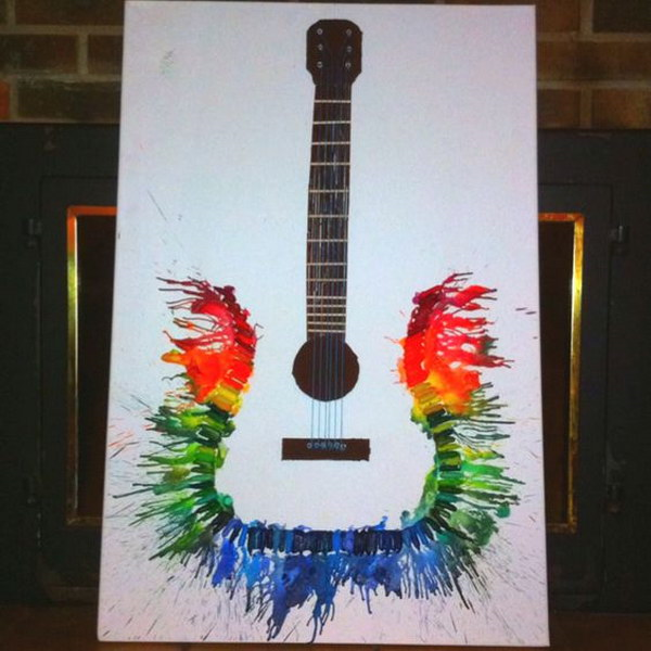 The students in Mrs. Bathiany's class created a project that tied into their unit on sound. The beautiful melted crayons on a large canvas create a one of a kind guitar. This vibrant guitar "ROCKS" off the canvas.