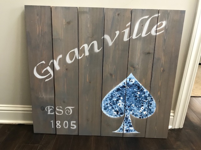 The charm of Granville of yesterday comes to life in this vintage cedar barn wood sign. This beautiful sign was lovingly hand painted by the children of Mrs. Whiteman's class in Granville colors of gray, white, and blue to bring spirit and pride to any Granville home!